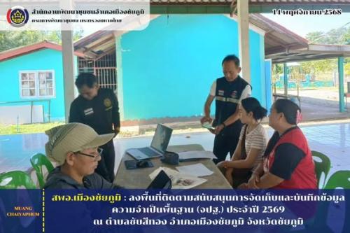 สพอ.เมืองชัยภูมิ : ลงพื้นที่ติดตามสนับสนุนการจัดเก็บและบันทึกข้อมูลความจำเป็นพื้นฐาน (จปฐ.) ประจำปี 2569 ณ ตำบลซับสีทอง อำเภอเมืองชัยภูมิ จังหวัดชัยภูมิ