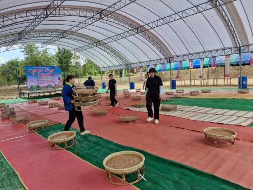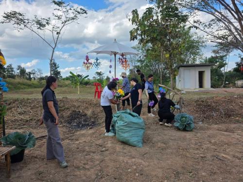 การลงพื้นที่ครั้งนี้มีวัตถุประสงค์เพื่อร่วมกันตกแต่งพื้นที่บริเวณแปลง “โคก หนอง นา ของกรมการพัฒนาชุมชน” ด้วยดอกไม้และเครื่องแขวนพื้นบ้าน (ตุง) รวมทั้งร่วมแรงร่วมใจจัดเตรียมสถานที่ภายในเต็นท์ จัดวางขันโตก เสื่อ และอุปกรณ์พื้นบ้านอื่น ๆ เพื่อสร้างบรรยากาศที่สวยงาม สะท้อนอัตลักษณ์วัฒนธรรมท้องถิ่น และเตรียมความพร้อมรองรับการจัดกิจกรรมพาแลงให้เป็นไปด้วยความเรียบร้อย