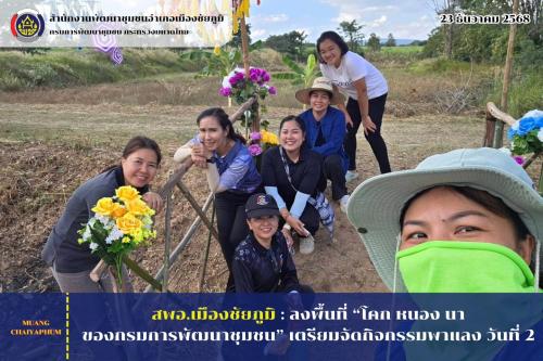 วันอังคารที่ 23 ธันวาคม 2568 เวลา 12.00 น. นางอรอุมา รุจาคม พัฒนาการอำเภอเมืองชัยภูมิ พร้อมด้วยเจ้าหน้าที่สำนักงานพัฒนาชุมชนอำเภอเมืองชัยภูมิ ลงพื้นที่แปลง “โคก หนอง นา ของกรมการพัฒนาชุมชน” ของนายไชยันต์ ทิพย์รักษ์ เพื่อเตรียมความพร้อมในการจัดกิจกรรม “โคก หนอง นา พาแลง เบิ่งแงง ไทชัยภูมิ 2” วันที่ 2