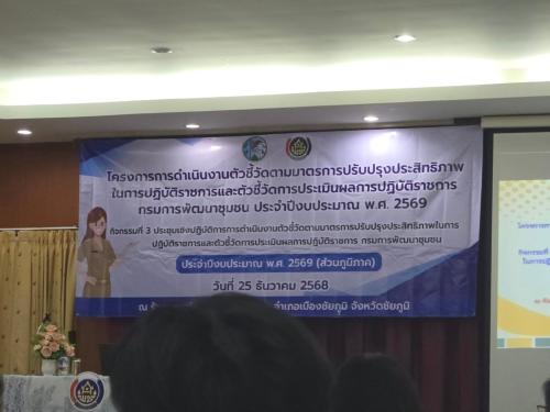 สพอ.เมืองชัยภูมิ : เข้าร่วมประชุมโครงการดำเนินงานตัวชี้วัดตามมาตรการปรับปรุงประสิทธิภาพในการปฏิบัติราชการ และตัวชี้วัดการประเมินผลการปฏิบัติราชการของกรมการพัฒนาชุมชน ประจำปีงบประมาณ พ.ศ. 2569