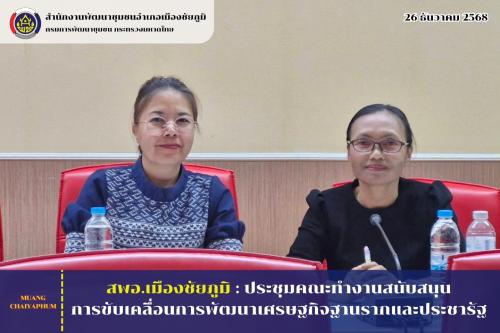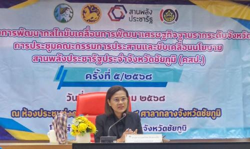 วันศุกร์ที่ 26 ธันวาคม 2568 เวลา 09.30 น. ณ ห้องประชุมทุ่งดอกกระเจียว ศาลากลางจังหวัดชัยภูมิ นายอนันต์ นาคนิยม ผู้ว่าราชการจังหวัดชัยภูมิ มอบหมายให้ นางสาวกานต์จรัส เอียดทองใส รองผู้ว่าราชการจังหวัดชัยภูมิ เป็นประธานการประชุมคณะทำงานสนับสนุนการขับเคลื่อนการพัฒนาเศรษฐกิจฐานรากและประชารัฐ พร้อมด้วยคณะทำงานสนับสนุนการขับเคลื่อนเศรษฐกิจฐานรากและประชารัฐ ด้านการเกษตร ด้านการแปรรูป และด้านการท่องเที่ยวโดยชุมชน จังหวัดชัยภูมิ