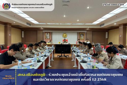 สพอ.เมืองชัยภูมิ : ร่วมประชุมเจ้าหน้าที่บริหารงานพัฒนาชุมชนและนักวิชาการพัฒนาชุมชน ครั้งที่ 12/2568