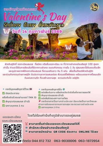 อำเภอเมืองชัยภูมิ ได้จัดกิจกรรมจดทะเบียนสมรสเนื่องในวันแห่งความรัก (Valentine day) ขึ้นในวันเสาร์ที่ ๑๔ กุมภาพันธ์ ๒๕๖๙ ณ สถานที่ท่องเที่ยวมอหินขาว ตำบลท่าหินโงม อำเภอเมืองชัยภูมิ ภายใต้สโลแกน “รักมั่นคง ยืนยง ดั่งมอหินขาว” โดยมีกิจกรรมต่างๆมากมาย อาทิเช่น การรับมอบใบสำคัญการสมรสจากผู้ว่าราชการจังหวัดชัยภูมิ กิจกรรมถ่ายภาพคู่สมรสกับเสาหิน ๕ แท่ง (มอหินขาว) รับของที่ระลึกในวันแห่งความรัก รับประทานอาหารบุฟเฟ่ต์/คอกเทล และชมแสงสีเสียงดนตรีในสวน โดยมีผู้ว่าราชการจังหวัดชัยภูมิเป็นประธานในพิธีจดทะเบียนสมรส