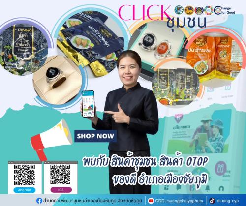 📢สพอ.เมืองชัยภูมิ ขอเชิญชวน ชม ช้อป สินค้า OTOP และผลิตภัณฑ์ชุมชน ทั้งของกิน ของใช้ ของที่ระลึก สินค้าขึ้นชื่อของจังหวัด เพื่อผลักดันรายได้สู่ชุมชน ผ่านแอปพลิเคชั่น “Click ชุมชน” คลิกเมนู “Shop ชุมชน” พร้อมฟังก์ชั่นใหม่หาร้านค้าที่อยู่ใกล้บ้านท่าน และยังสามารถเก็บคูปอง ส่วนลด ติดตามข่าวสาร กิจกรรมของกรมการพัฒนาชุมชนได้ในที่เดียว