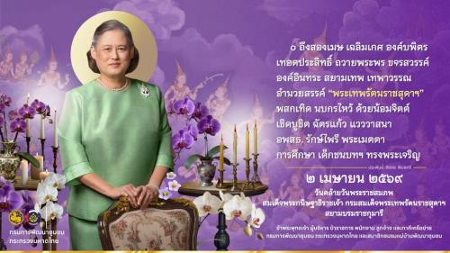 เนื่องในโอกาส 2 เมษายน 2569 วันคล้ายวันพระราชสมภพ สมเด็จพระกนิษฐาธิราชเจ้า กรมสมเด็จพระเทพรัตนราชสุดา ฯ สยามบรมราชกุมารี
