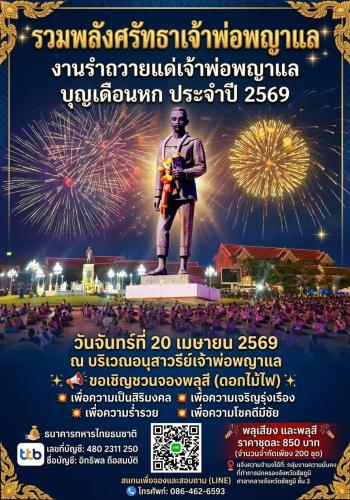 บุญเดือนหก ประจำปี 2569 ในวันจันทร์ที่ 20 เมษายน 2569 ณ บริเวณอนุสาวรีย์เจ้าพ่อพญาแล